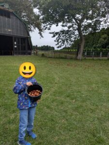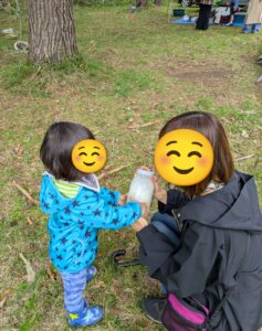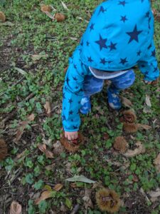 少し飽きてきたところで、近くに落ちていた栗拾いへ下の子と参戦!