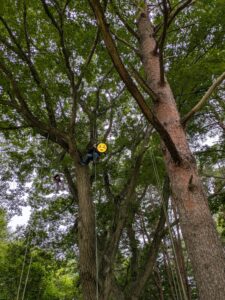 そんな中、上の子は木の上でベルを鳴らして降りてきました。