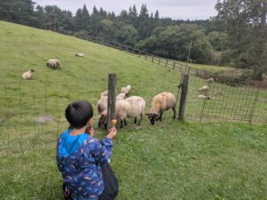 羊にもエサをあげてふれあい体験を楽しみ、スタンプ5個目!