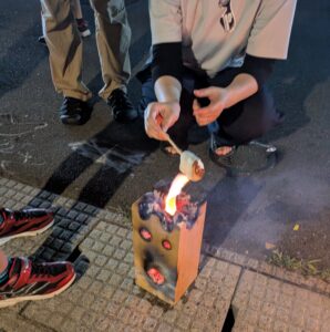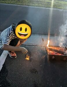 風で火が飛ばないように防炎シートや火消し壺を忘れずに。